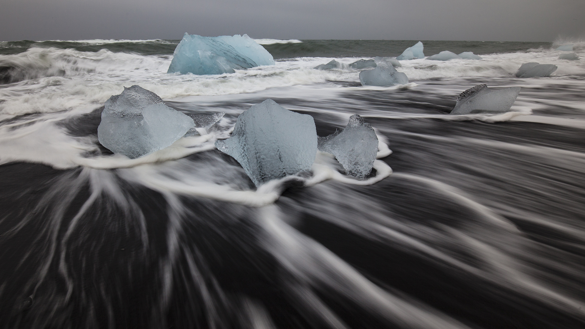 Chunks of Ice washed ashore at Jökulsárlón Black Beach, Iceland