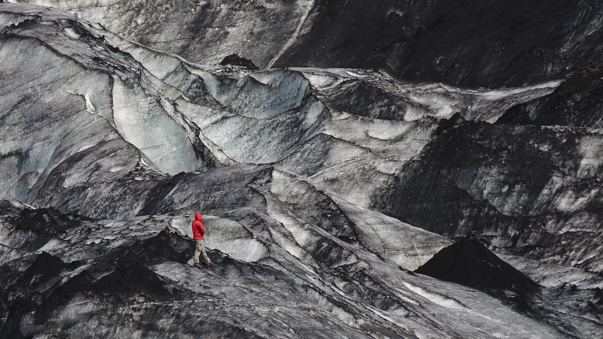 A walker on the Sólheimajökull glacier, Iceland